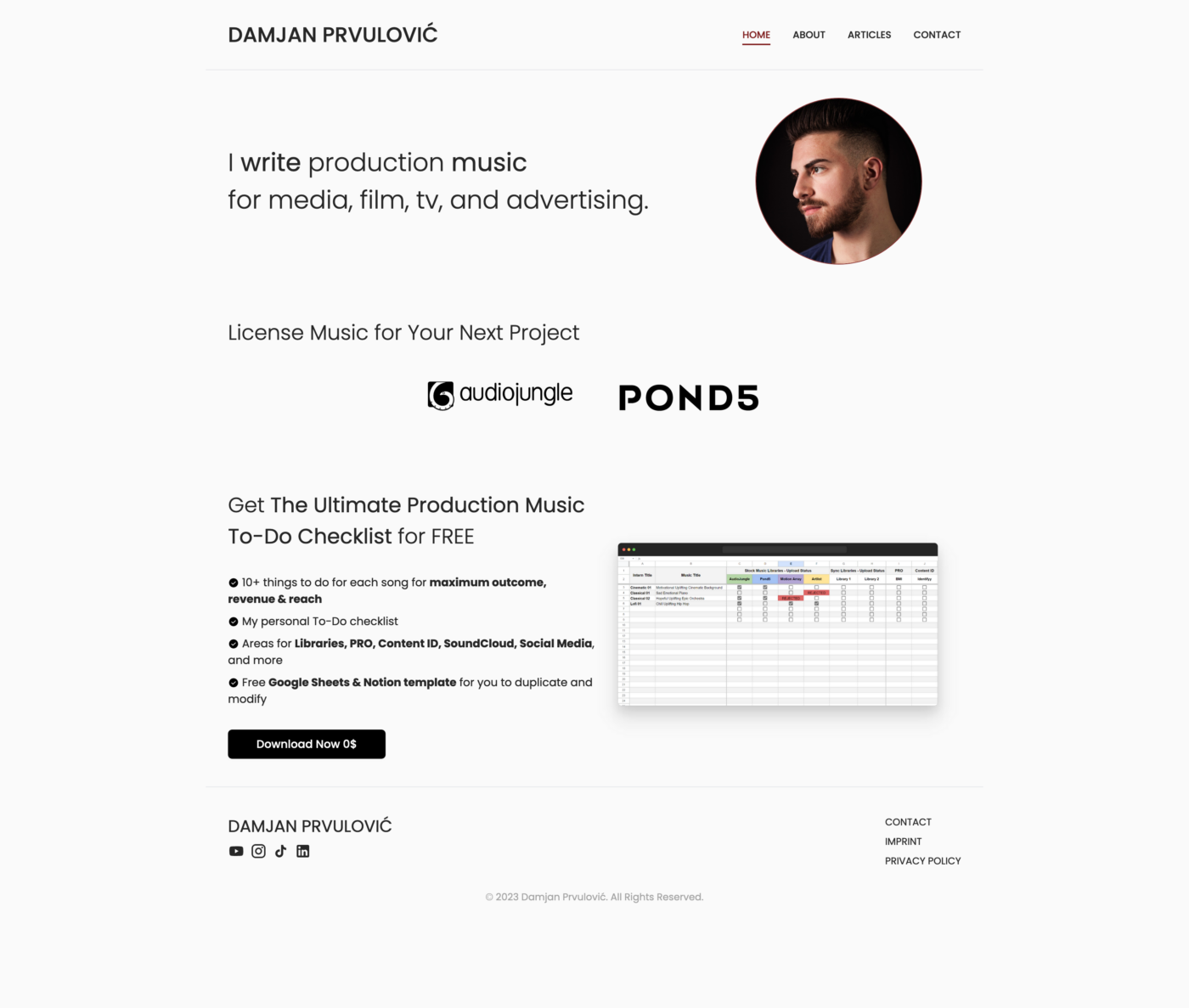 After these improvements, the homepage of Damjan’s website creates a clearer, more focused and professional impression.